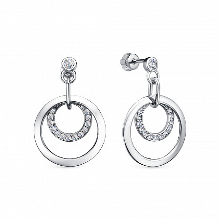 Серьги с фианитом родированные серебро 925*
