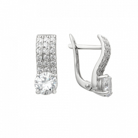 Серьги с фианитом родированные серебро 925*