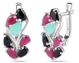 Серьги, изумруд берилл , рубин корунд , сапфир корунд, Брюнетка