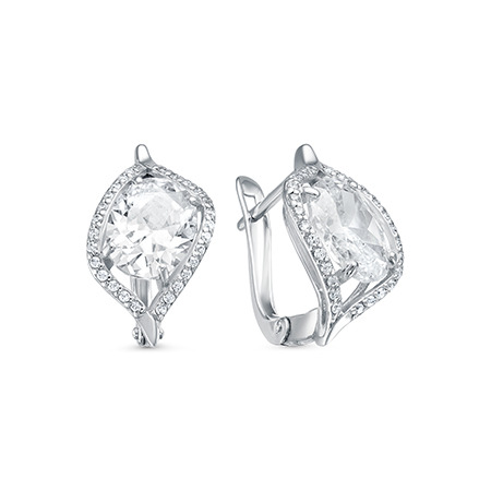 Серьги с фианитом родированные серебро 925*