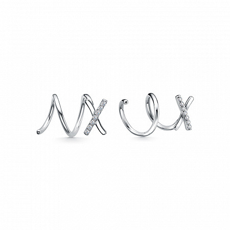 Серьги с фианитом родированные серебро 925*