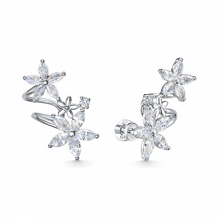 Серьги с фианитом родированные серебро 925*
