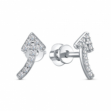 Серьги с фианитом родированные серебро 925*