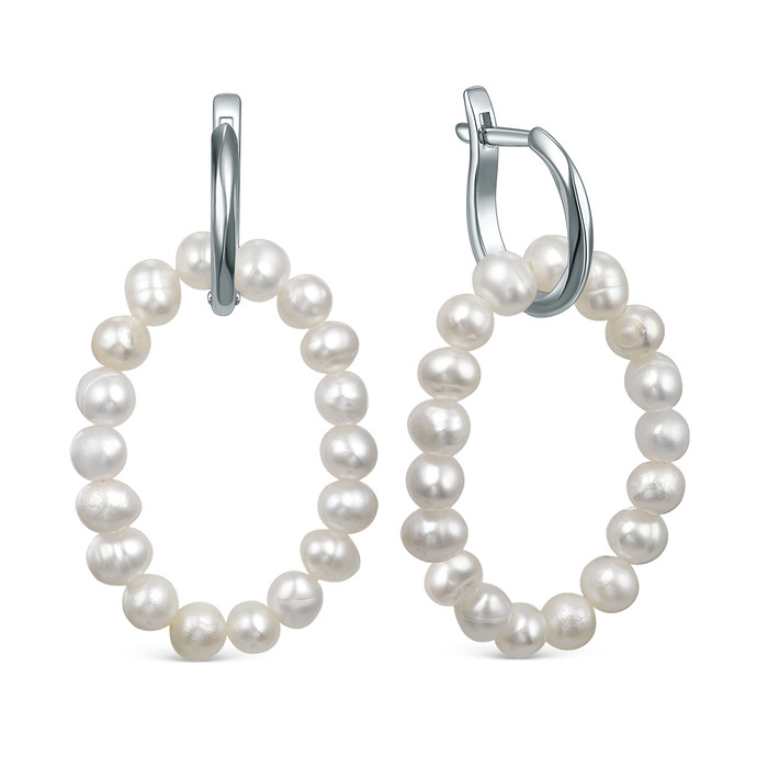 Совместные покупки Каменск-Уральский Ювелирные украшения и бижутерия Серьги — Серьги-трансформеры (2 в 1) из родированного серебра с белым пресноводным жемчуг