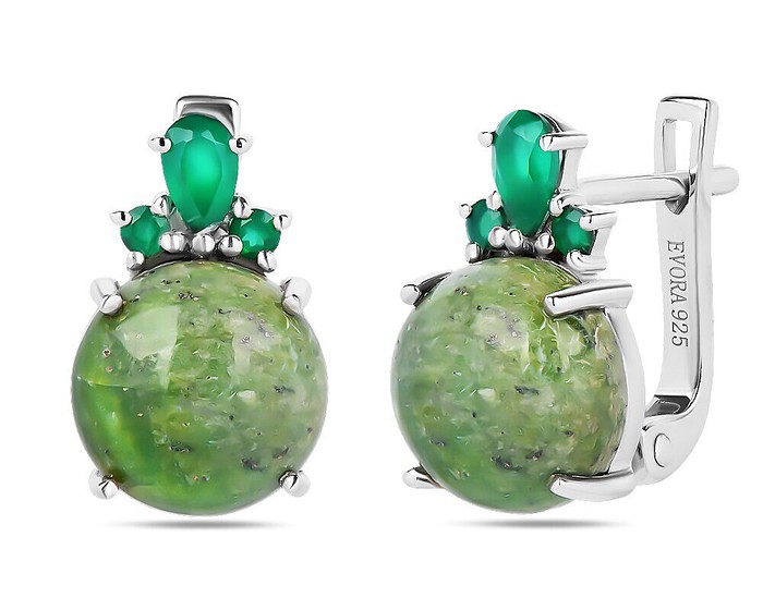 Серьги, арт.658556 Серебро Серебро 925, 4,59 гр., зеленый опал , зеленый агат