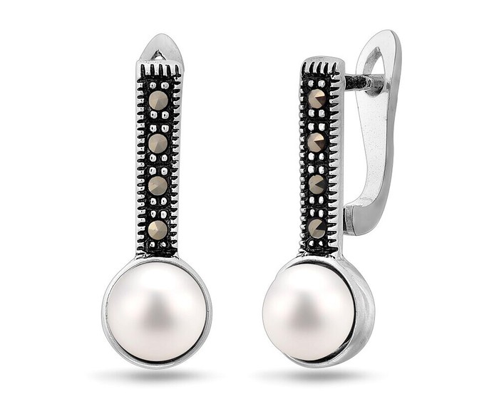 Серьги, арт.656445 Серебро Серебро 925, 5,79 гр., жемчуг , марказит