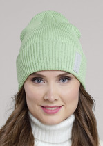 Стильная двойная шапка с отворотом в нежных пастельных цветах, без подклада, декорирована стильной нашивкой. Станет не только отличной защитой от холода, но и модным аксессуаром.