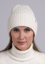 Зимняя женская шапка с отворотом и с пришивными шевронами из камней. Связана полуфангом из итальянской пряжи, имитация ручной вязки, подкладка полный флис.