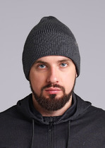 мужская классическая шапка по голове с гладким отворотом. Связана из хлопка с добавлением вискозы, что придает шапке комфортное ощущение при носке. Металлический логотип.