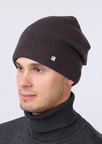 Мужская классическая модель по голове с отворотом. Рельефно связана из современной, итальянской, меланжированной пряжи с шерстью мериноса. Классические мужские расцветки. Дополнена стильным кожаным логотипом.