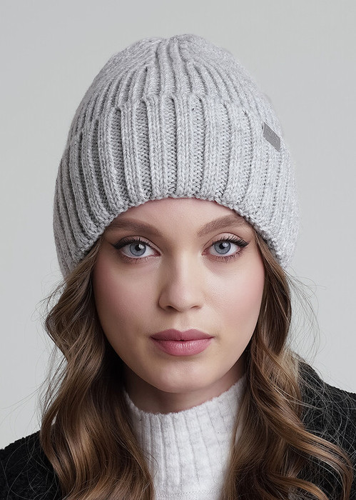 Шапка женская с отворотом, декорирована нашивкой логотип в височной зоне. Подойдёт для холодной осени- тёплой зимы.