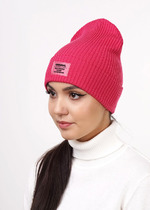 Шапка женская ластичного переплетения, декорирована нашивой логотип. Утепление флисовым подкладом по всей голове. Подойдёт для холодной зимы.