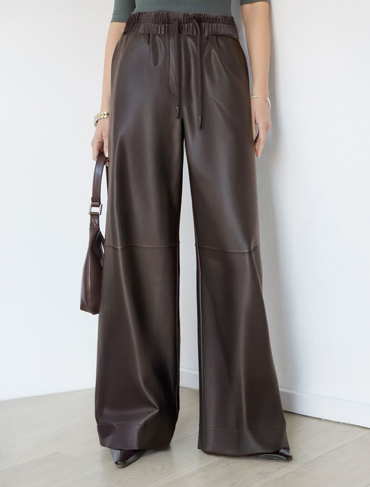 Широкие кожаные брюки-трубы с поясом