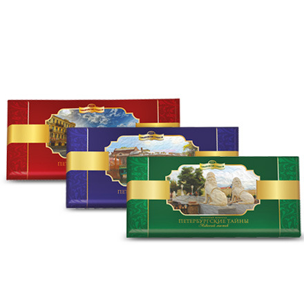 Молочный шоколад, изготовленный по ГОСТ 31721. В дизайне использованы изображения трех известных и загадочных мест Петербурга: Невский проспект, Львиный мостик, Поцелуев мост. На оборотной стороне этикета размещена история достопримечательности.