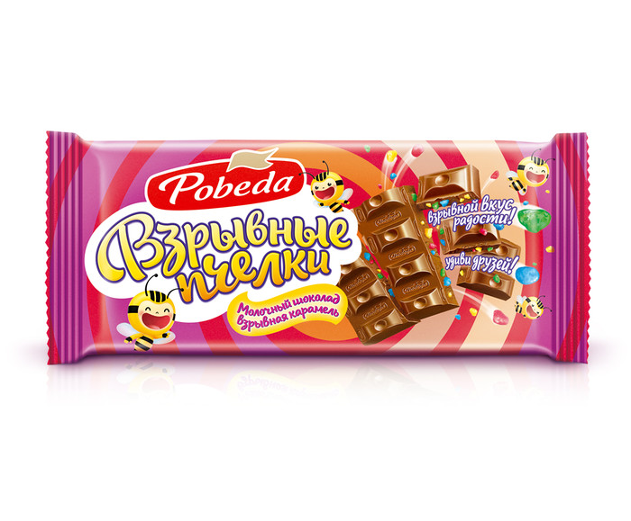 Нежный молочный шоколад с взрывной карамелью обладает выраженным молочным ароматом и сладким вкусом. Начинка начинает шипеть и "взрываться" у вас во рту.