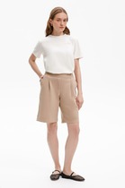 Шорты выполненны из хлопкового розового полотна в цветочки. Характеристики: широкие, короткие, пояс притачной, присборен на резинку, подкладка. В боковых швах карманы с отрезным бочком. Низ обработан в подгибку с закрытым срезом. Длина по боковому шву 35 см