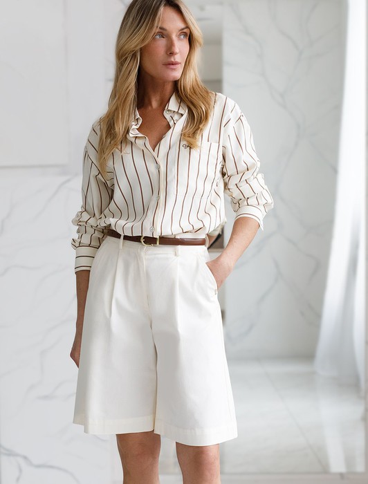 Состав: 97%Хлопок 3%ПУШорты-бермуды с защипами выполнены из хлопкового твила. Длина по колено и свободный силуэт комфортны в носке, а универсальные оттенки впишутся в любой гардероб. Изделие дополнено застежкой на молнию и пуговицу, боковыми и задними карманами. Натуральный материал ткани обеспечивает высокий уровень комфорта, отличную гигроскопичность и воздухопроницаемость. Эластан в составе изделия минимизрует деформацию модели и продлевает срок носки.