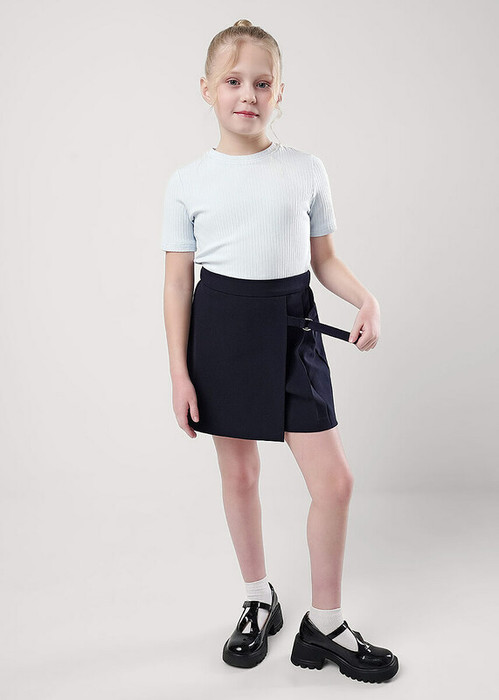 Юбка- шорты- отличное дополнение к вашему гардеробу! Асимметричная модель со складками с одной стороны дополнена декоративным хлястиком с пряжкой. Модель отлично подойдёт для создания повседневного школьного образа и отличного настроения!