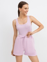 Шорты выполнены из трикотажного полотна с блеском. Шорты облегающего силуэта с высокой посадкой, на цельнокроеном поясе с эластичной тесьмой.