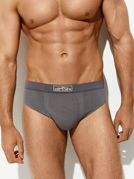 Бесшовные мужские трусы «слипы» в полоску со средней линией талии и вывязанной брендированной резинкой.