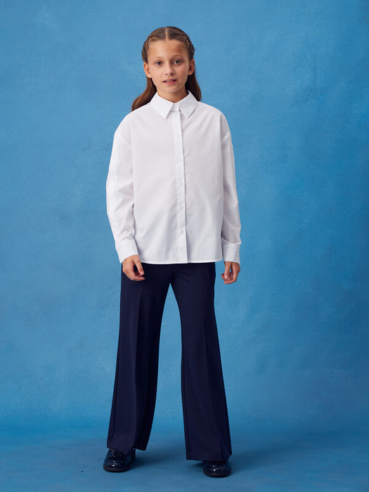 Недостающий пазл в гардеробе девочки — свободная белая блузка! Она выполнена из смесового хлопка. Высококачественный материал прекрасно дышит, держит форму и идеально подходит для образов на каждый день. Блузка застёгивается на пуговицы. Модель дополнена декоративным элементом на рукавах в виде планок с пуговицами. "