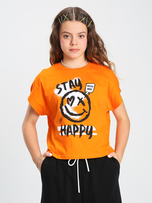 Футболка прямого кроя для девочек. Свободный прямой силуэт, приспущенное плечо и немного укороченные рукава для оверсайз посадки.