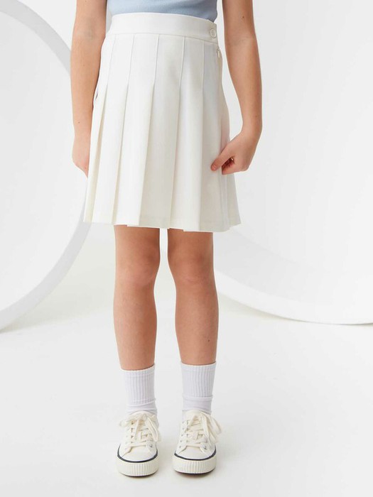 Короткая юбка в складку. Эластичная костюмная ткань из поливискозы. Трапециевидный крой со средней посадкой талии. Пояс с внутренней регулируемой резинкой. Потайная застежка-молния в боковом шве. Размерный ряд 128 – 176 см.