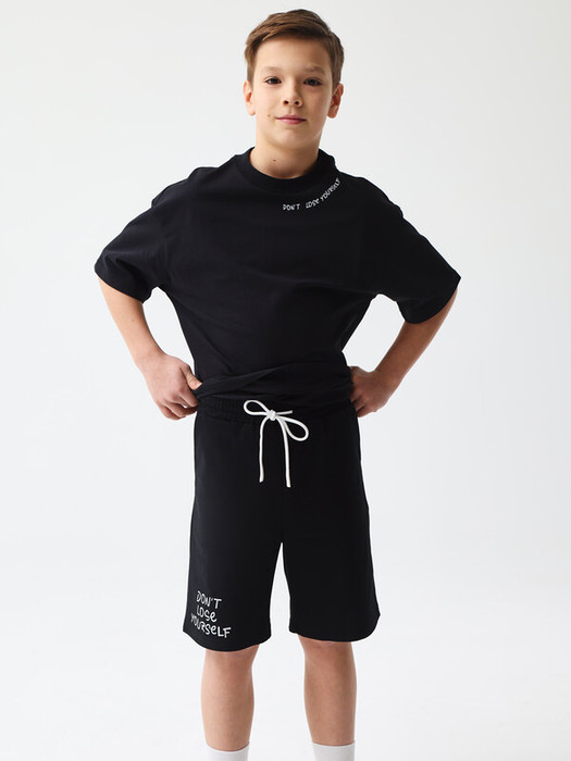 Футболка оверсайз силуэта с принтом DON`T LOSE YOURSELF (с англ. «не потерять себя»). Мягкий трикотаж из 100% хлопка. Свободный крой со спущенным плечом. Круглый вырез горловины и короткий рукав. Популярный крой оверсайз и спущенная линия плеч позволяет чувствовать себя свободно. Размерный ряд 116 – 176 см.
