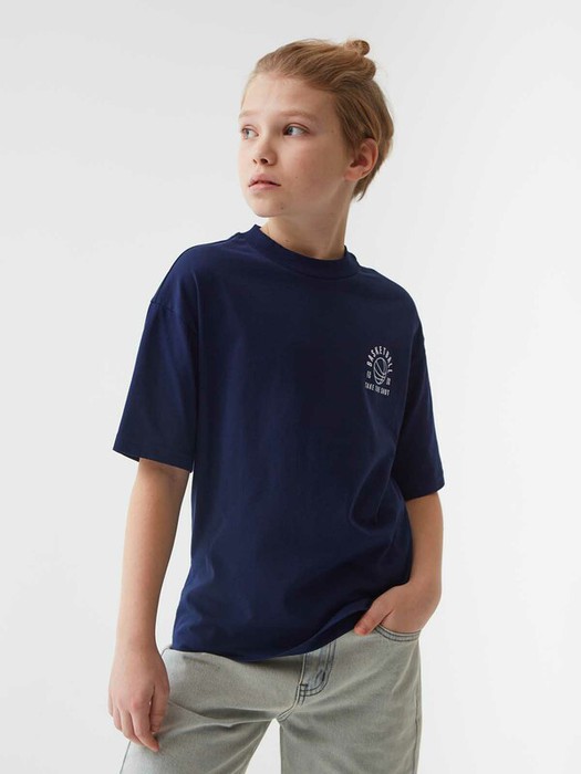Футболка оверсайз силуэта с небольшим контрастным принтом в виде надписи спереди BASKETBALL TAKE THE SHOT (с англ. «баскетбол сделай бросок») и большим тематическим принтом на спине в баскетбольной эстетике. Мягкий трикотаж из 100% хлопка. Свободный крой со спущенным плечом. Круглый вырез горловины и короткий рукав. Популярный крой оверсайз и спущенная линия плеч позволяет чувствовать себя свободно. Размерный ряд 116 – 176 см.