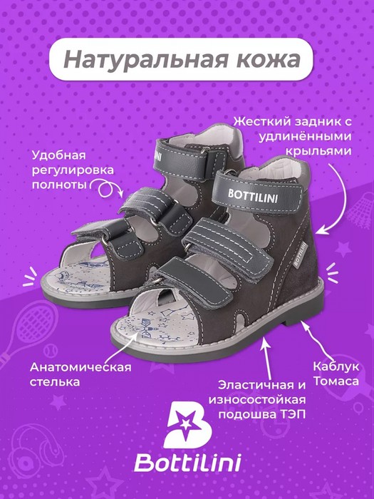 профилактические ортопедические сандалии, изготовлены из натуральной высококачественной кожи. подошва произведена из износостойкого, упругого и нескользящего материала с естественным перекатом в передней части стопы. многослойная стелька с супинатором и умеренной выкладкой свода поддерживает стопу и препятствует формированию плоскостопия. внутренняя часть жесткого фиксирующего задника изготовлена из термопласта, который не деформируется и держит заднюю часть стопы в естественно-правильном положении при ходьбе. мягкий кант смягчает контакт голени с обувью, а цельнокройная подкладка без лишних швов минимизирует риск натирания кожи. застежки вкупе с широкой раскрываемостью моделей обеспечивают идеальную подгонку обуви по полноте.