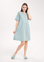 Сорочка из кулирки. Принт в виде силуэта панорамы города и звездного неба. Тонкие бретели. Несколько вариантов расцветки — бирюзовая, голубая, лиловая, ментоловая, персиковая и темно-синяя. Размеры от 42 до 54. Есть розница.