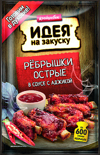 Соус для приготовления острых ребрышек с аджикой "Идея на закуску". Вам потребуется только этот соус, 600 г свиных или бараньих ребрышек и бумага для выпечки. Не содержит ГМО, глутамата натрия и искусственных красителей.