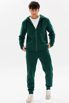 Брюки мужские из хлопкового трикотажа прямого силуэта. Пояс притачной регулируется шнуром. Карманы на молниях, с листочками.