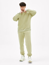 Спортивный костюм из хлопкового трикотажного полотна. Куртка прямая с воротником с фронтальной молнией. Рукава втачные. Карманы куртки прорезные . На груди куртки слева и на левой брючине под карманом - фирменный шеврон.. Воротник, манжеты и пояс куртки выполнены из полосатого эластичного трикотажа. Брюки прямые, с прорезными карманами .Пояс брюк эластичный, по линии талии дополнительно регулируется шнурком.