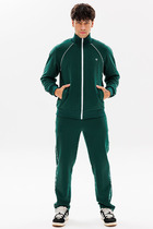 Мужской спортивный костюм из плотного трикотажа с петельной изнанкой. Верх комплекта - толстовка-худи с капюшоном, с накладным карманом "кенгуру". Рукава толстовки втачные, свободные со спущенной линией плеча, с эластичными манжетами. Брюки книзу заужены на резинку. Карманы брюк в боковых подрезах. Пояс брюк по линии талии дополнительно регулируется шнуром.