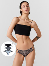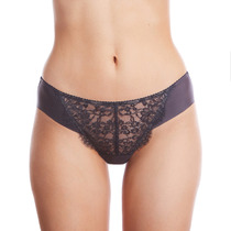 Трусы - стринги из гипюра и эластичной сетки со средней линией талии. С акцентной лентой в тон по краям. Соблазнительно подчеркивают бедра, практически полностью открывают ягодицы. Превосходно сочетаются с тонкой и облегающей одеждой. Ластовица из мягкого хлопка обеспечивает дополнительный комфорт.