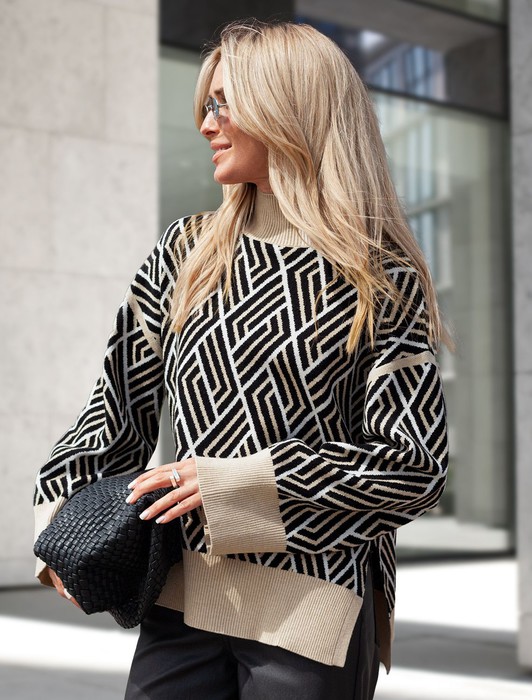 Совместные покупки Каменск-Уральский Женская одежда Костюмы, комплекты — Свитер с боковыми разрезами жаккардовой вязки с кашемиром