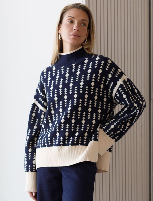 Совместные покупки Каменск-Уральский Женская одежда Футболки — Свитер с боковыми разрезами жаккардовой вязки с кашемиром