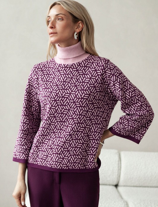 Состав: 50%Вис 20%ПА 20%ПЭ 10%Кашемир Плотность: 12 GG Параметры модели на первом фото: Рост 172, бюст 88, талия 64, бедра 88Свитер жаккардовой вязки выполнен из нежной пряжи на основе вискозы с добавлением кашемира. Модель свободного силуэта с укороченным рукавом подходит для любой фигуры. Жаккардовый узор выглядит дорого и роскошно, делая любой образ респектабельным. Нежная пряжа комфортно ощущается на теле, сохраняя оптимальное тепло при этом не перегревая
