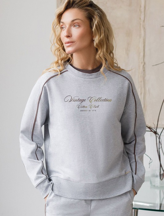 Состав: 95%Хлопок 5%ПУ Плотность: 240 Г/м2 Размер товара на первом фото: 42Стильный свитшот светло-серого цвета с эффектом меланж из премиального футера двухнитки с эластаном сочетает в себе комфорт и оригинальность. Джемпер выполнен из натурального хлопка, который обеспечивает мягкость и дышащие свойства ткани. Нежный материал дарит ощущение уюта в любое время года, а премиальное качество изготовления гарантирует долговечность и сохранение формы после множества стирок. Особенность изделия — спущенная линия плеча и аккуратные разрезы, которые добавляют современный акцент и делают образ более выразительным. Лампасы на рукавах добавляют наряду динамики и выделяют этот свитшот на фоне классических решений. Принт в виде надписи придает индивидуальность, позволяя выделиться без лишней вычурности. Перевод надписи: Vintage collection Cotton club Inspired by 1978 - Винтажная коллекция Cotton Club, вдохновленная 1978 годом. Дополнен металлическим логотипом бренда. Представлена широкая размерная линейка, включая маленькие и большие размеры, что позволяет подобрать идеальный вариант для разной фигуры и роста. Этот уютный свитшот отлично подходит для повседневной носки благодаря своей комфортной посадке и мягкой текстуре. Он станет универсальным элементом гардероба, легко сочетающимся с различными стилями одежды. Свободный джемпер из футера станет отличным выбором для активного отдыха, обеспечивая стильный внешний вид и удобство в прохладное время года.