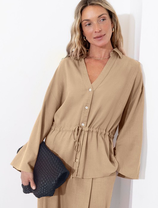 Свободная блузка с кулиской на талии изо льна с вискозой