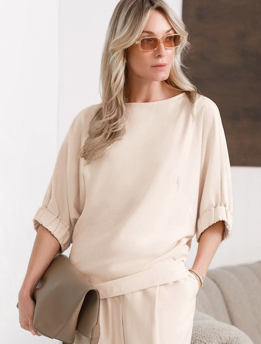 Совместные покупки Каменск-Уральский Женская одежда Костюмы, комплекты — Свободная блузка с вырезом лодочка из плотного лиоцелла