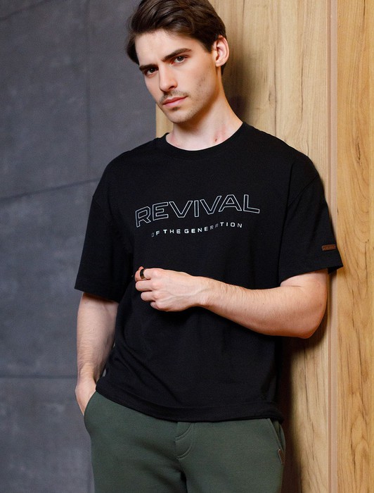 Состав: 92%Хлопок 8%ПУ Плотность: 170 Г/м2Перевод принта: Revival of the generation - возрождение поколения. Футболка свободного кроя выполнена из премиального хлопка. Авторский принт нанесен красками с устойчивым покрытием. Благодаря эластану, носить изделие очень комфортно, и оно сохранит свой безупречный вид в течение долгого времени. На рукаве нашивка из эко-кожи с логотипом бренда.