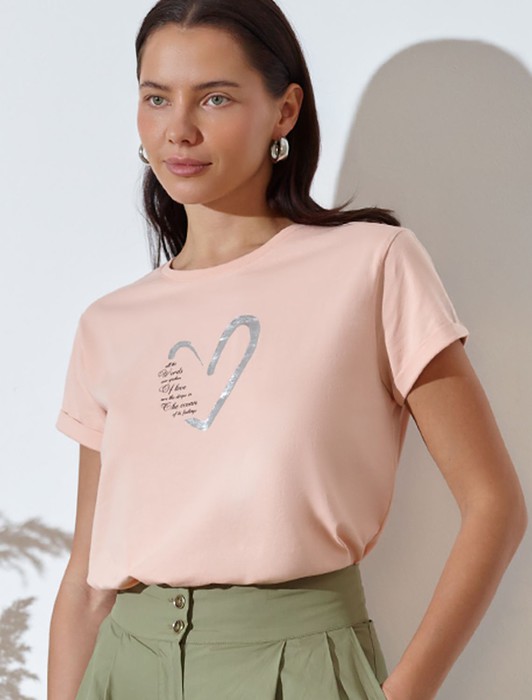 Состав: 92%Хлопок 8%ПУ Плотность: 170 Г/м2Модная футболка пцдрового цвета привлекает внимание своим интересным дизайном и ярким принтом. Благодаря прямому крою изделие комфортно садится на любую фигуру, в том числе на большие размеры, и не сковывает движений. Круглый вырез подчеркивает современный стиль, а натуральный материал из хлопка с добавлением эластана обеспечивает удобство в повседневной носке и приятные тактильные ощущения. Прочность и износостойкая структура сохраняет первоначальную форму футболки после множества стирок. Рукава имеют аккуратные подгибы, что придает изделию завершенность и помогает сохранять аккуратный внешний вид. Принт в виде сердца и надписи нанесен красками с устойчивым покрытием, перевод надписи: All the word even spoken of love are the drops in the ocean ol its feeling - Все слова, даже произнесенные о любви, — это капли в океане ее чувств. Стильная футболка гармонично вписывается в любой гардероб и подойдет для прогулок, отдыха дома или неформальных встреч. Благодаря особенностям кроя модель хорошо сидит, скрывая недостатки и подчеркивая достоинства. Удобная футболка идеально сочетается с базовыми вещами, позволяя создавать новые интересные образы каждый день.