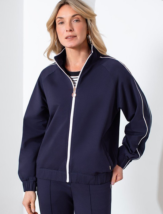 Свободный бомбер с лампасами на молнии из петельчатого футера двухнитки с эласта