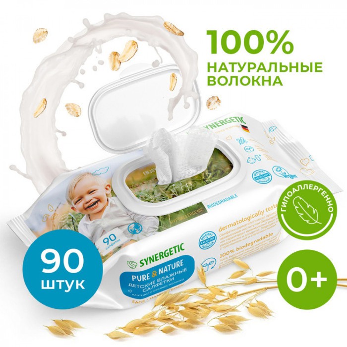 Гипоаллергенные биоразлагаемые салфетки Synergetic Pure & Nature "Пантенол и овсяное молочко" из натуральных волокон эффективно очищают и ухаживают за кожей малыша с первых дней жизни. Салфетки дерматологически протестированы независимым институтом Dermatest® в Германии, что гарантирует минимальный риск раздражения и аллергии на чувствительной и атопичной коже. Подходят для очищения кожи лица, рук и тела детей и взрослых. 100% биоразлагаемые салфетки Synergetic Pure & Nature изготовлены из натуральных мягких волокон целлюлозы, безопасных для самой чувствительной кожи.