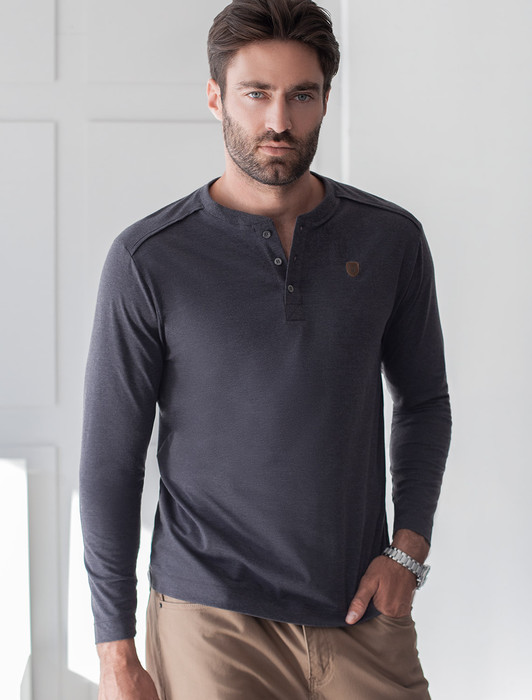 Тонкий лонгслив с круглым воротом на пуговицах из премиального хлопка с эластано