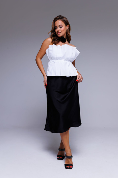 Топ белый, обработаный по переду складки, застежка сбоку на потайную молнию