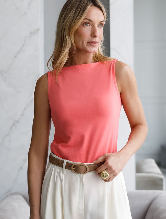 Состав: 92%Хлопок 8%ПУ Параметры модели на первом фото: Рост 170, бюст 89, талия 63, бедра 92Топ выполнен из премиального хлопка с эластаном. Лаконичная базовая модель впишется в любой гардероб и дополнит многослойные образы. Материал изделия хорошо тянется и гарантирует идеальную посадку по фигуре. Из украшений только металлическим логотипом бренда.