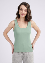 Топ эффектно смотрится благодаря вязке «английская резинка» и отлично пойдет для создания стильных образов.